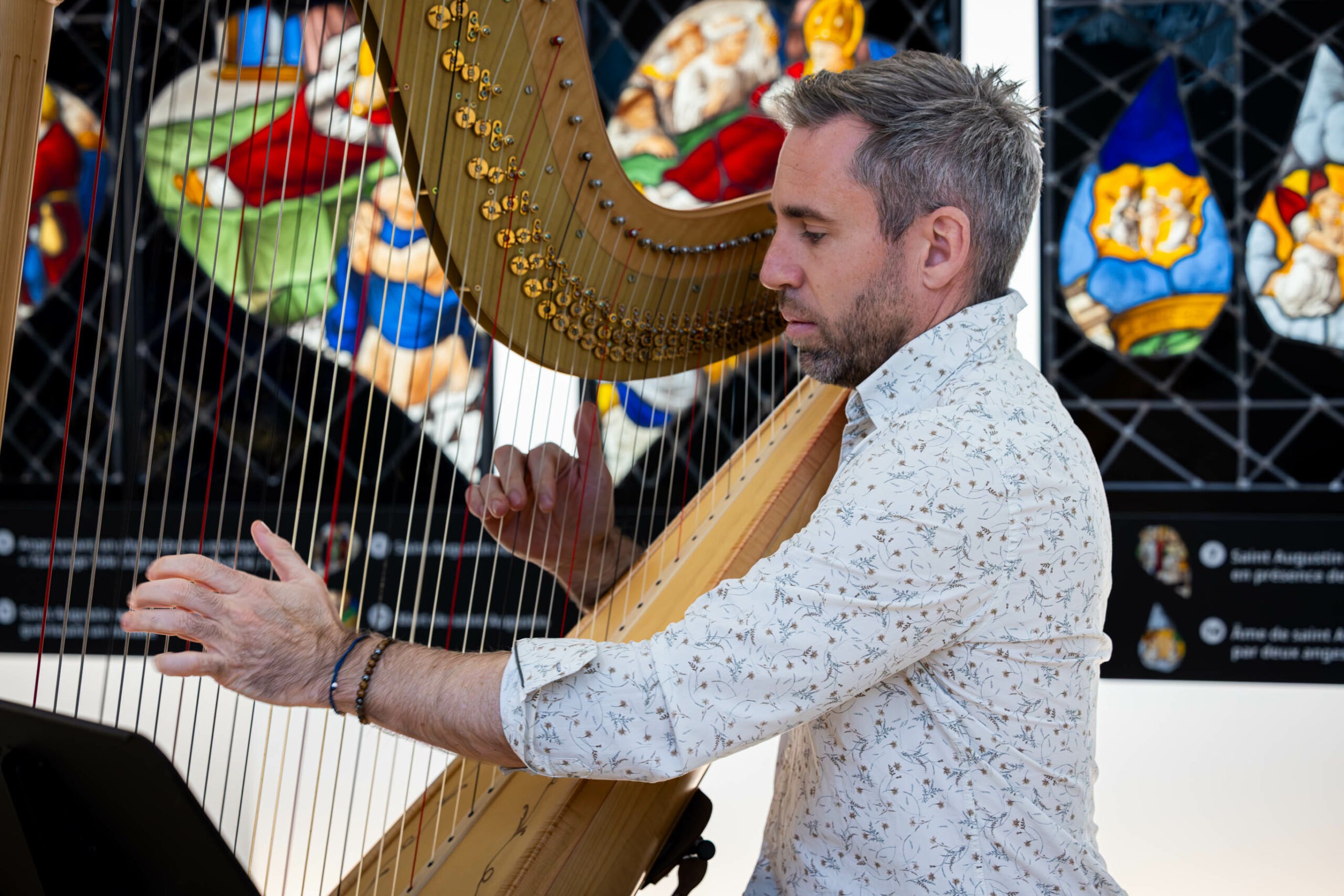 Le harpiste Vincent Buffin, est venu jouer tout l’après-midi, au chevet des malades de l’hôpital (adultes et enfants).