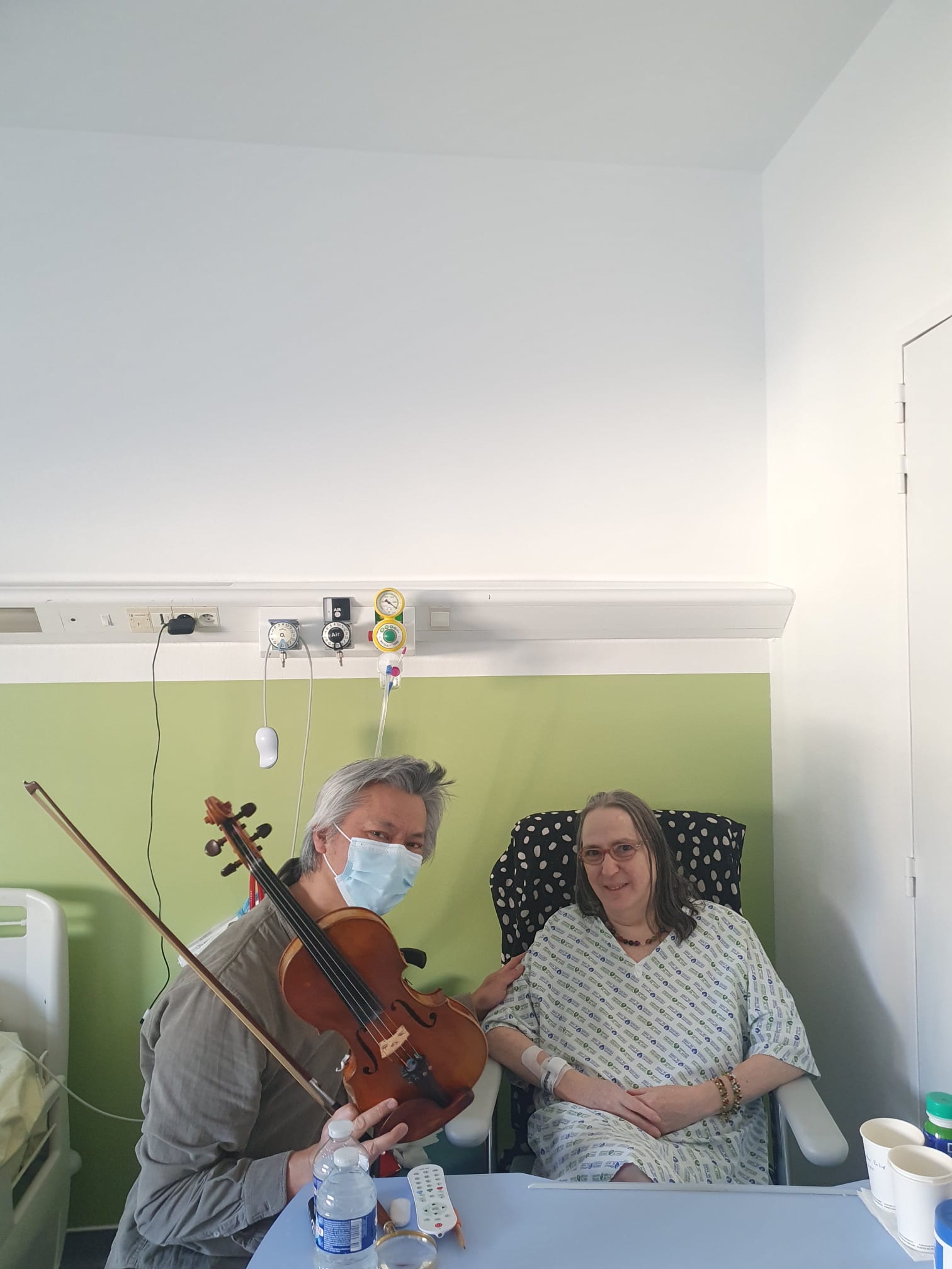 Le violoniste soliste, Vinh Pham était à l’hôpital Necker pour visiter des services adultes et enfants, choisis par le service « Culture et animations » de l’hôpital.